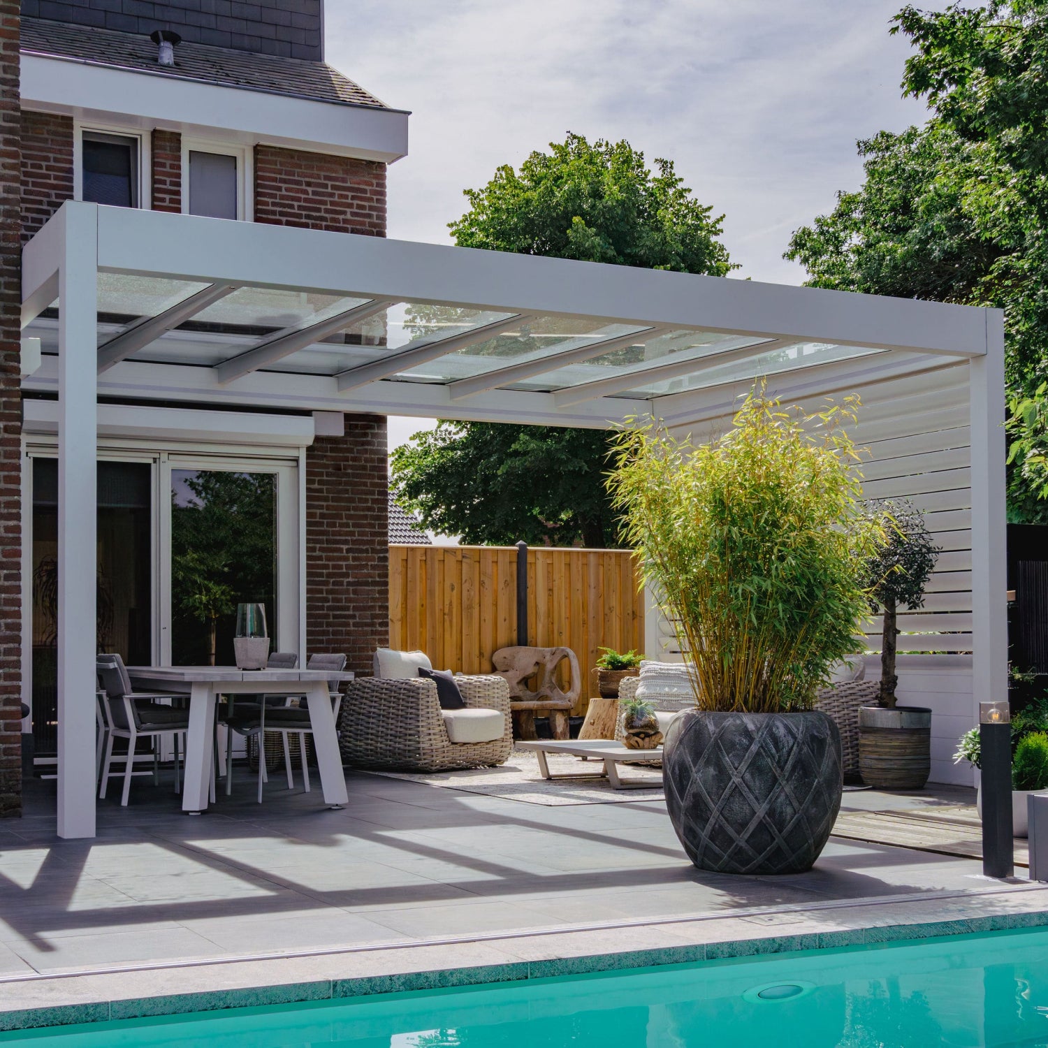 Glass roofing maximises natural light and maintains a clear visual connection between your home and garden while providing reliable year-round shelter.